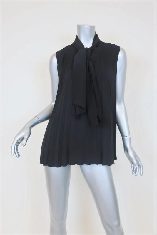 Co Tie-Neck Top Black Pleated Silk Size Small Sleeveless Blouse -