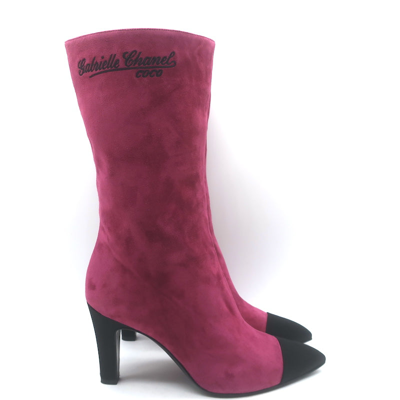 Chanel Gabrielle Cap Toe Boots Fuchsia Suede & Black Satin Size 37