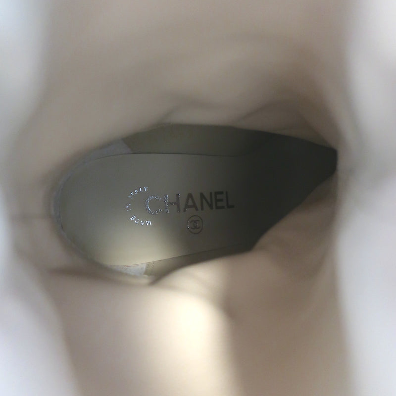 Step out in style with these exquisite Chanel 22B CC Cap Toe Bicolor Stretch Leather Ankle Boots. Channeling timeless elegance, these cream...