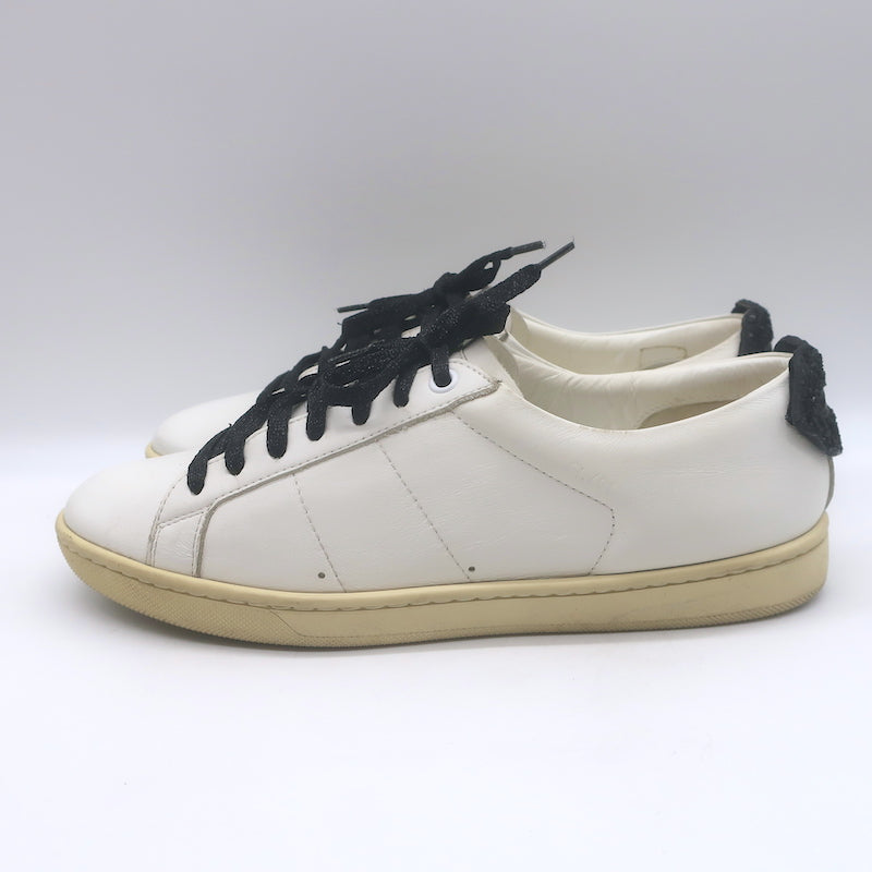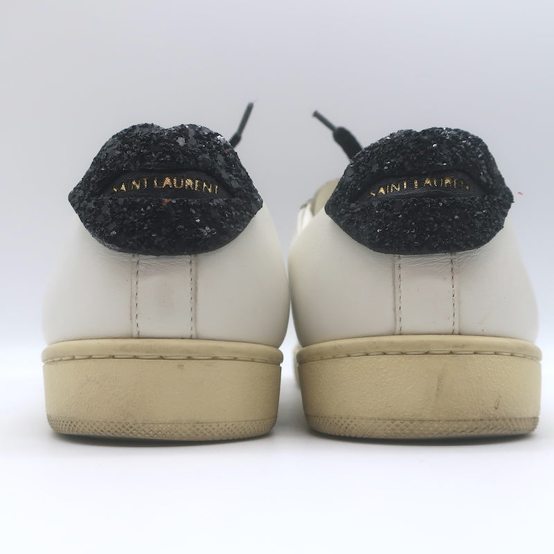 Saint Laurent Glitter Lips Court Classic Sneakers White Leather Size 37 US 8