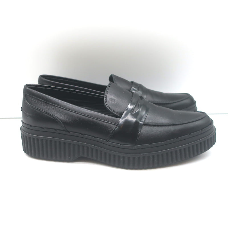 Tod's Creeper Penny Loafers Black Leather Size 37.5