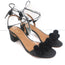 Aquazzura Pom Pom Ankle Tie Sandals Black Raffia Size 39 Open Toe Mid-Heel