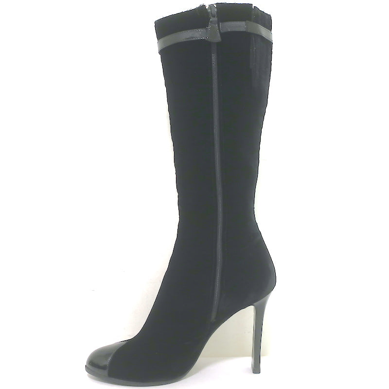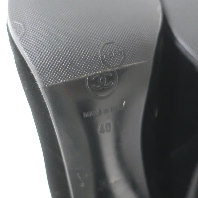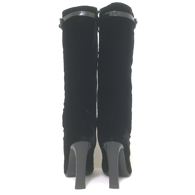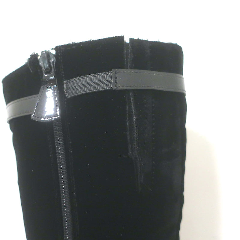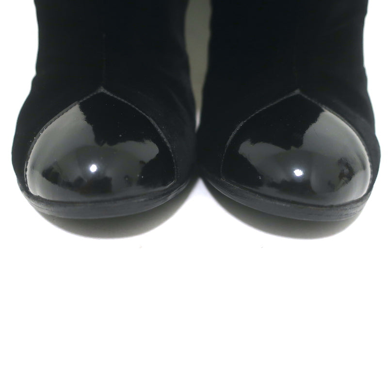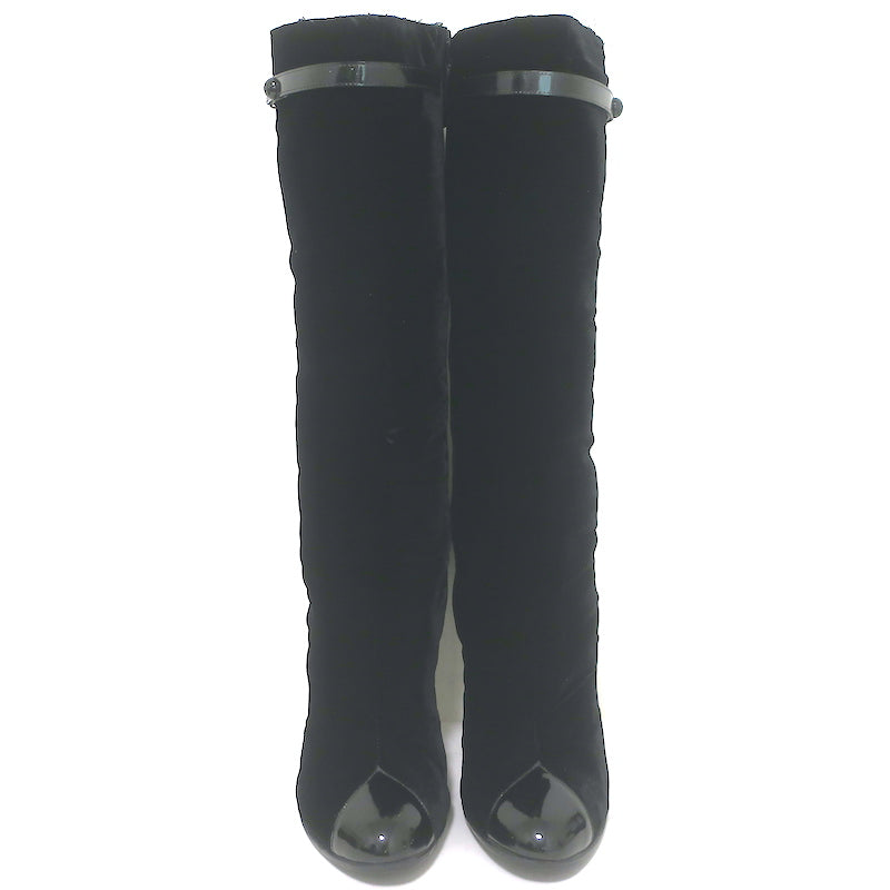 Chanel CC-Strap Cap Toe Tall Boots Black Velvet & Patent Leather Size 40