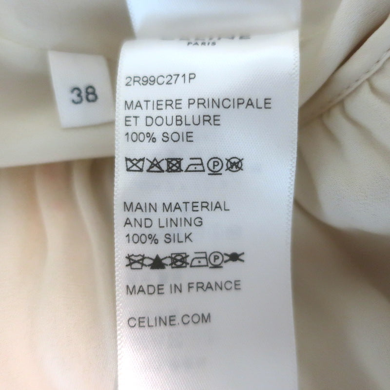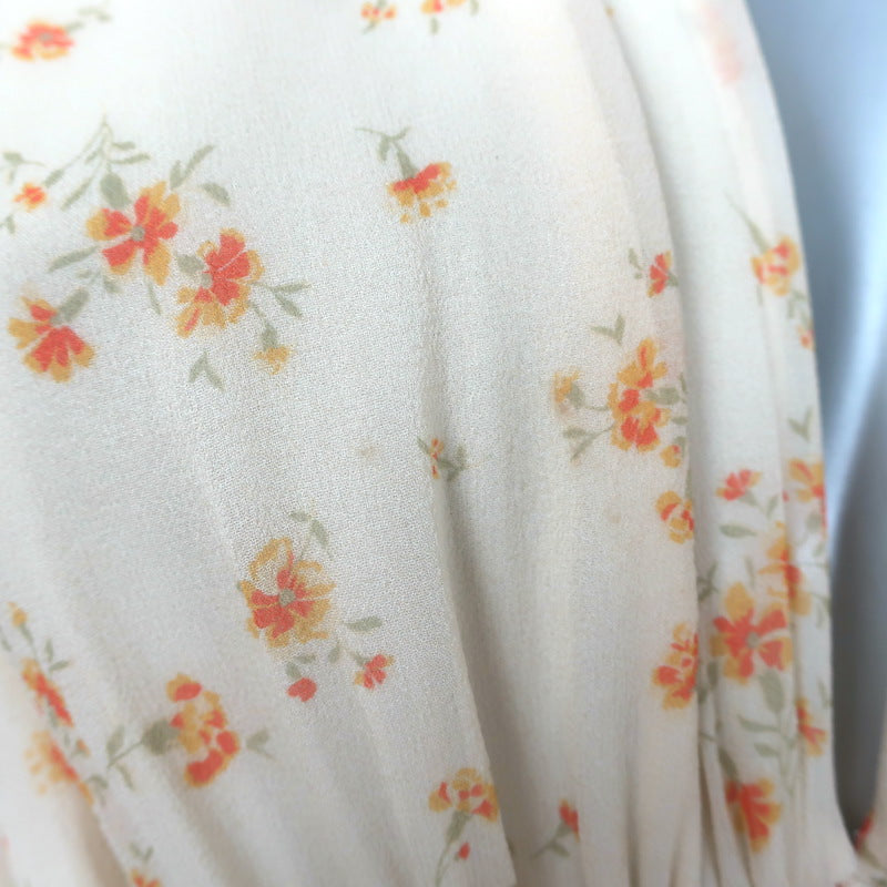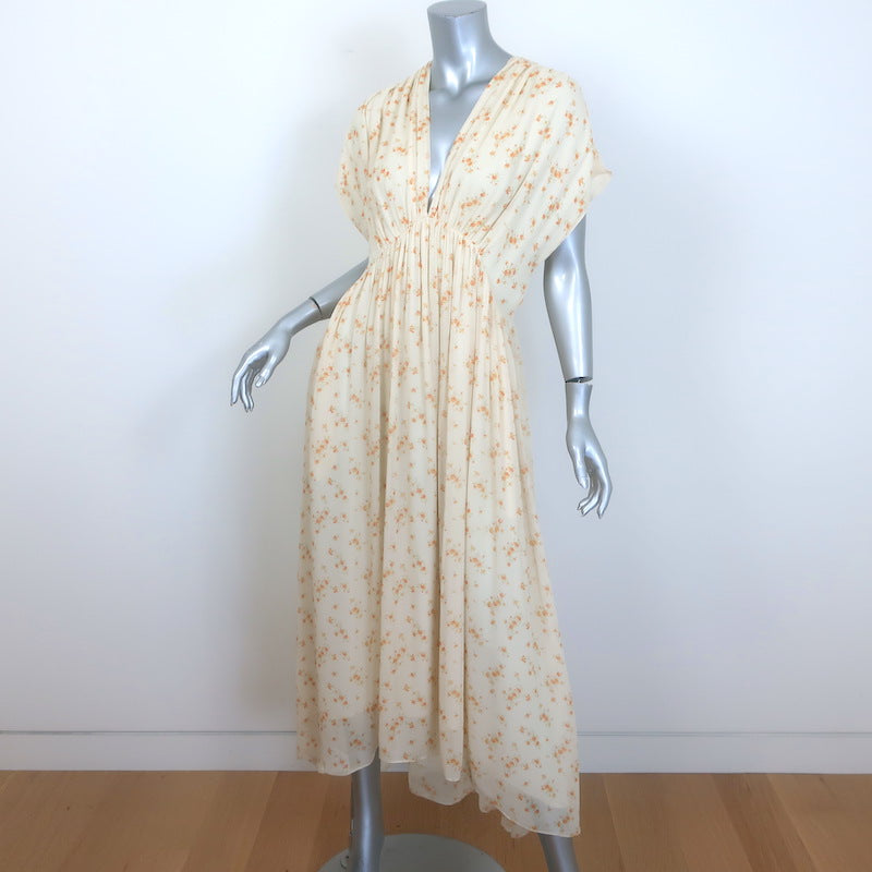 Celine Ruched Floral Print Georgette Midi Dress Ivory Silk Size 38