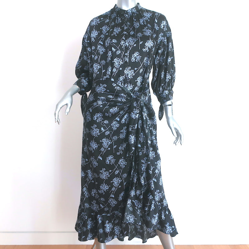 Cinq a Sept Halette Tie-Waist Ruffle Dress Charcoal Floral Print Size 6 NEW
