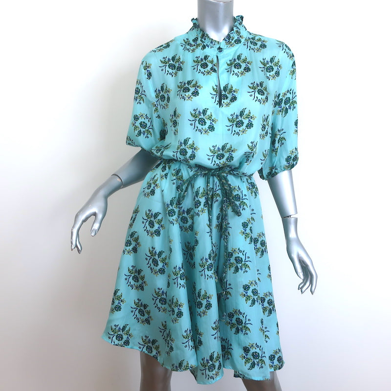 Hannah Artwear Gaia Belted Dress Blue Floral Print Silk Size 1