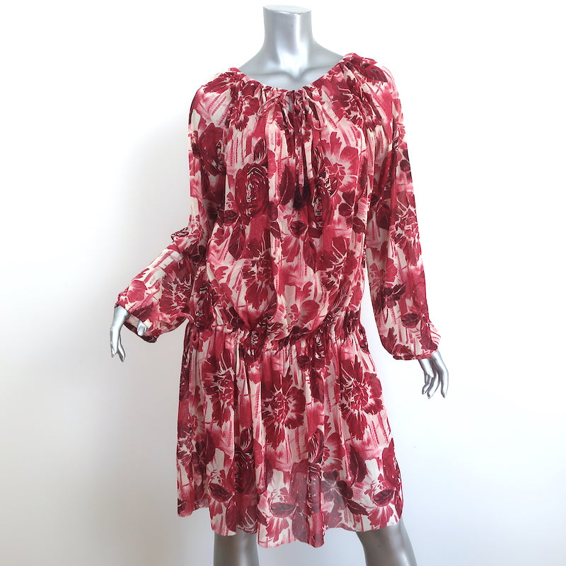 Ulla Johnson Skye Tiered Dress Burgundy Floral Print Silk Georgette Si...