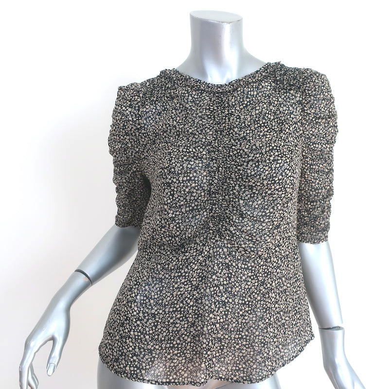 Les Coyotes de Paris Ambre Ruched Top Black Floral Print Crepe Size 36