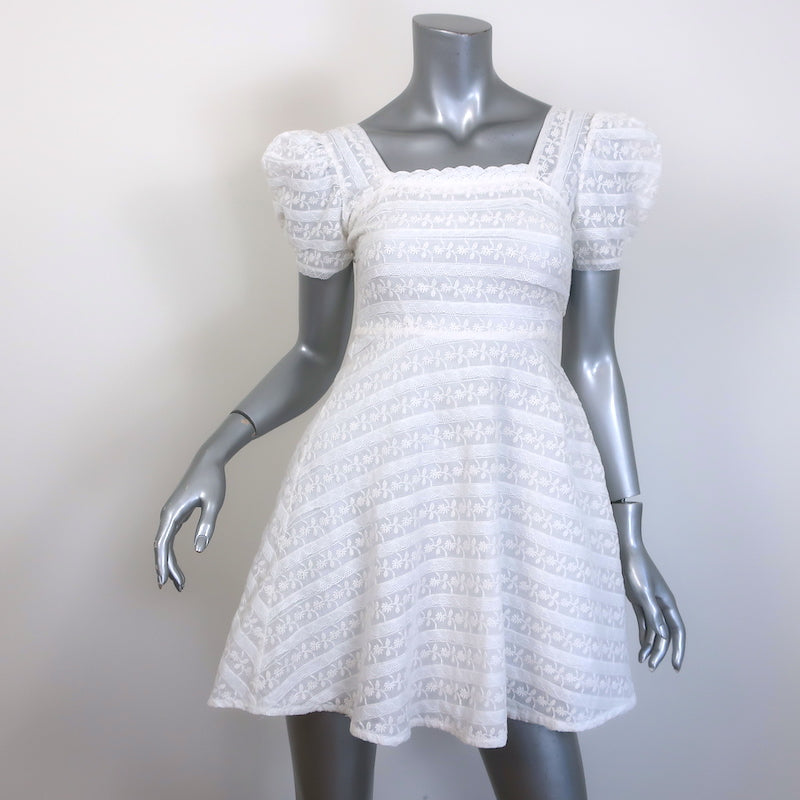 LoveShackFancy Drella Floral-Embroidered Puff Sleeve Mini Dress White Size 00