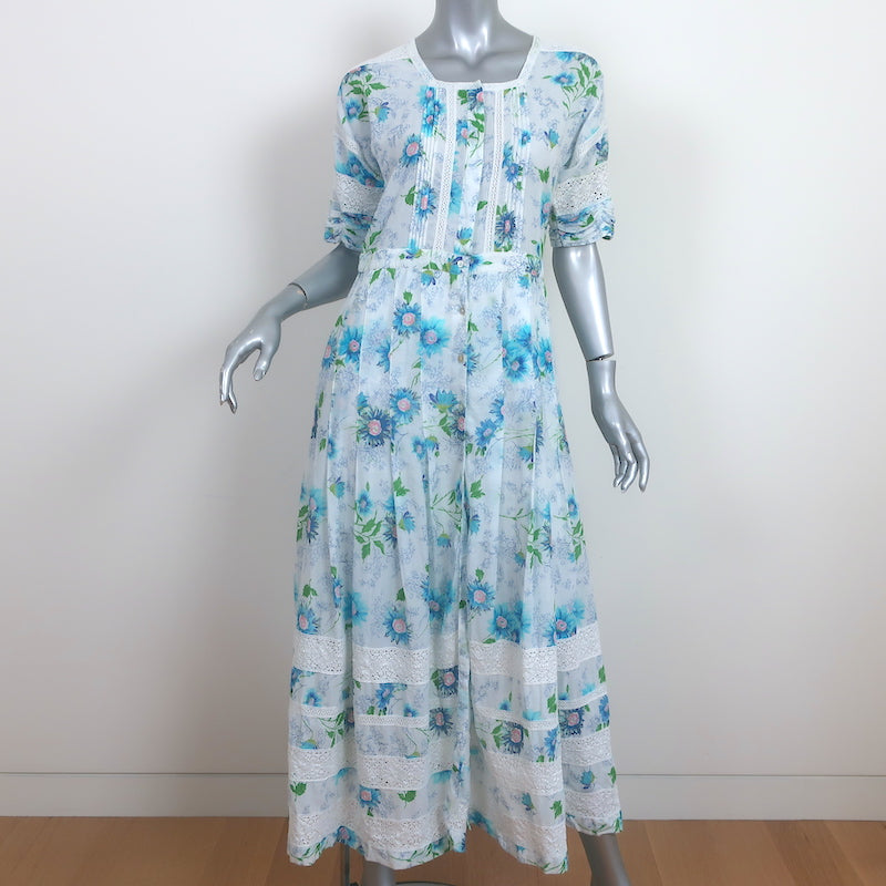 LoveShackFancy Edie Maxi Dress White/Blue Floral Print Cotton Size Extra Small