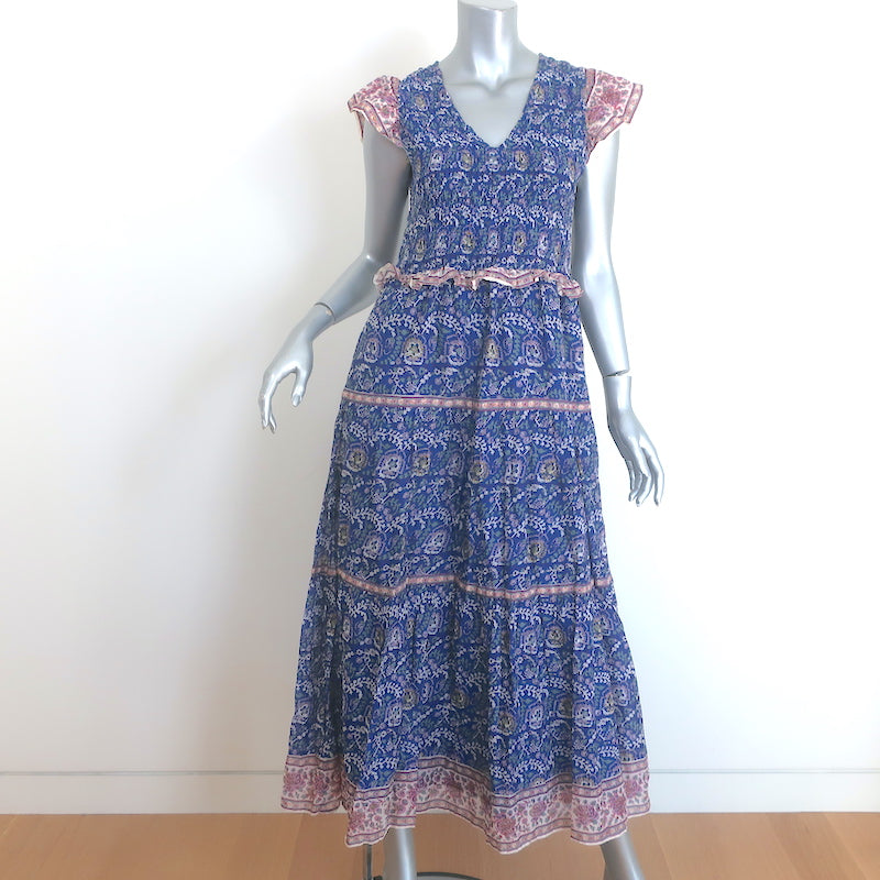SEA Rosita Smocked Midi Dress Blue Floral Print Cotton Size 6