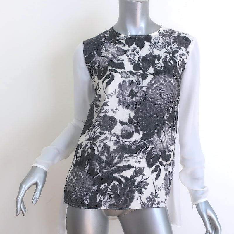 Stella McCartney Floral-Front Blouse White/Gray Silk Size 38 Long Sleeve Top