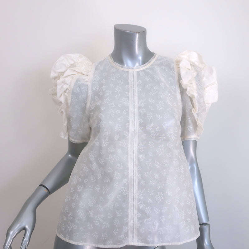 Ulla Johnson Aria Puff Sleeve Top Cream Floral Print Organza Size 2