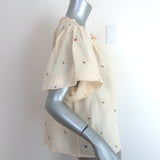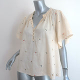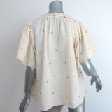 THE GREAT Floral-Embroidered Top Ecru Cotton Size 2 Short Sleeve Blouse