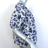THE GREAT The Carriage Top White/Blue Floral Print Size 1 Puff Sleeve Blouse
