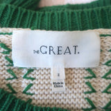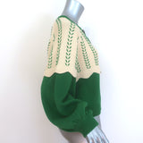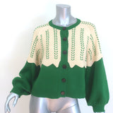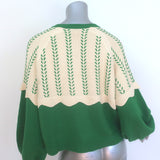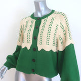 THE GREAT The Scallop Sophomore Cardigan Green/Ivory Cotton-Blend Size 2