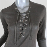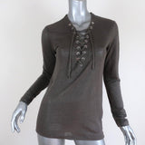 IRO Lace-Up Top Tissaspe Gray Linen Size Extra Small Long Sleeve Tee