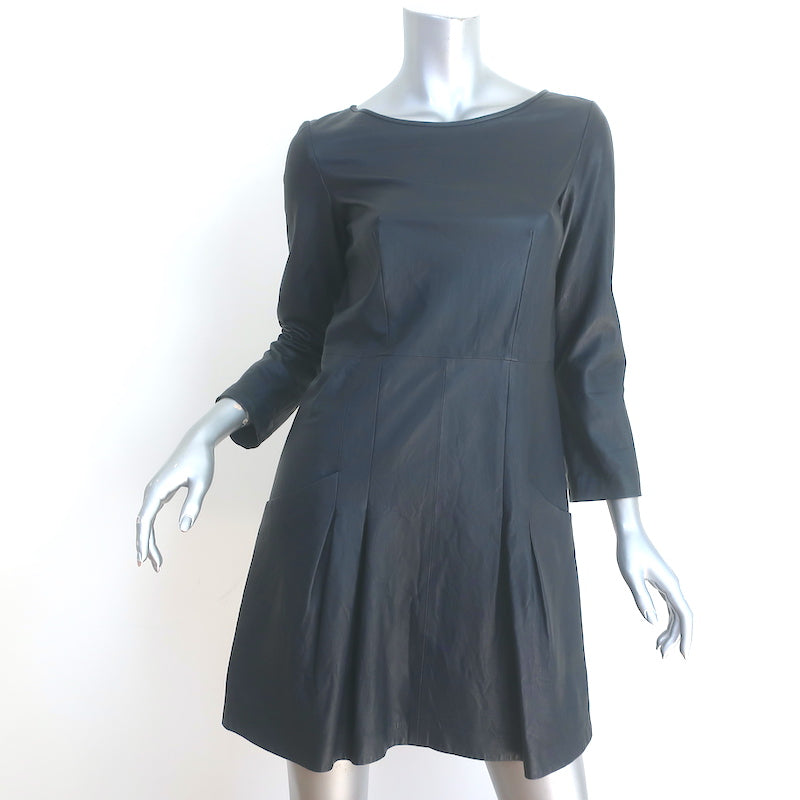 Rebecca Taylor Dress Stacy Navy Stretch Pique & Satin Size 2 Sleeveles...