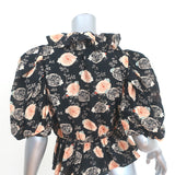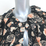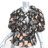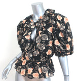 Ulla Johnson Puff Sleeve Top Nadya Black Floral Print Size 4 Tie-Neck Blouse