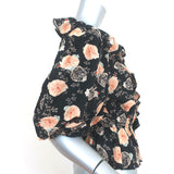 IRO Top Bow Black Floral Print Ruffled Crepe Size 34 Long Sleeve Blouse