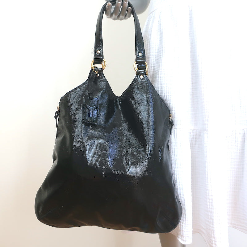 Yves Saint Laurent Tribute Tote Black Patent Leather Large Shoulder Bag