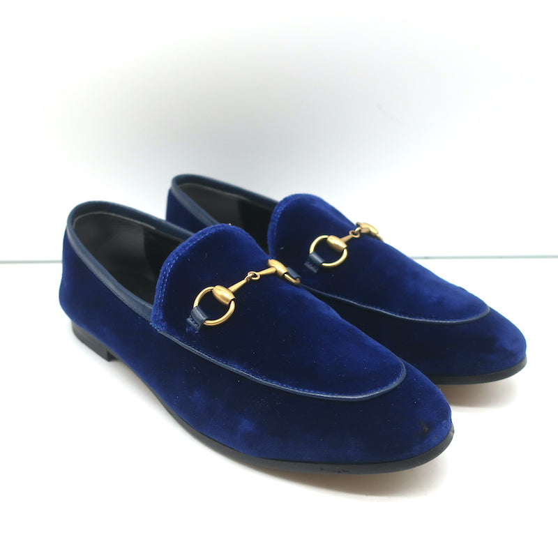 Gucci Jordaan Velvet Horsebit Loafers Dark Blue Size 36