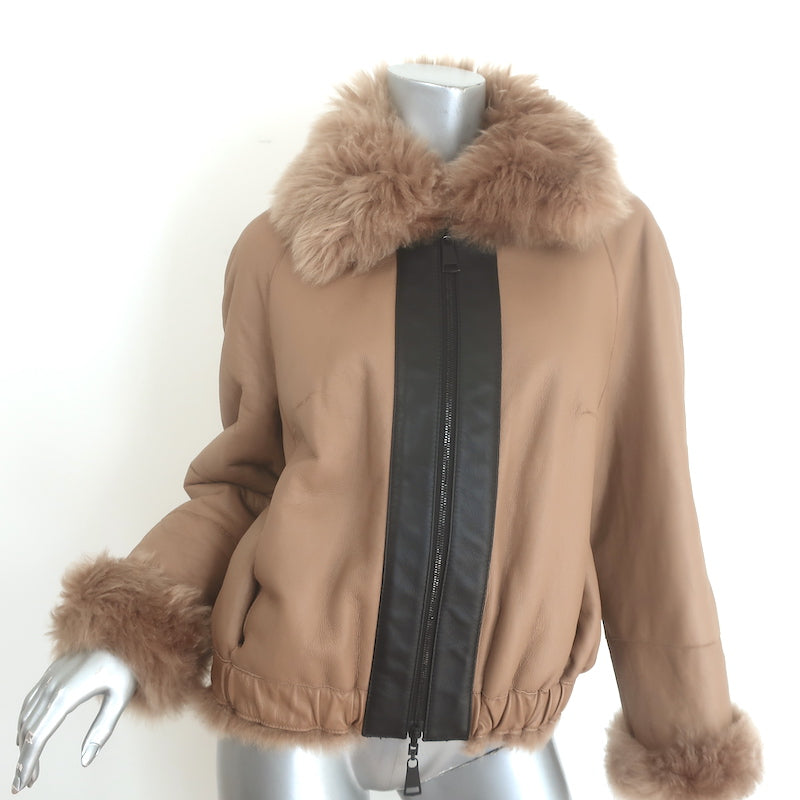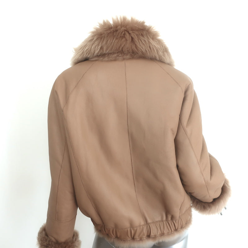 Zeynep Arcay Reversible Shearling & Leather Bomber Jacket Beige Size US 4