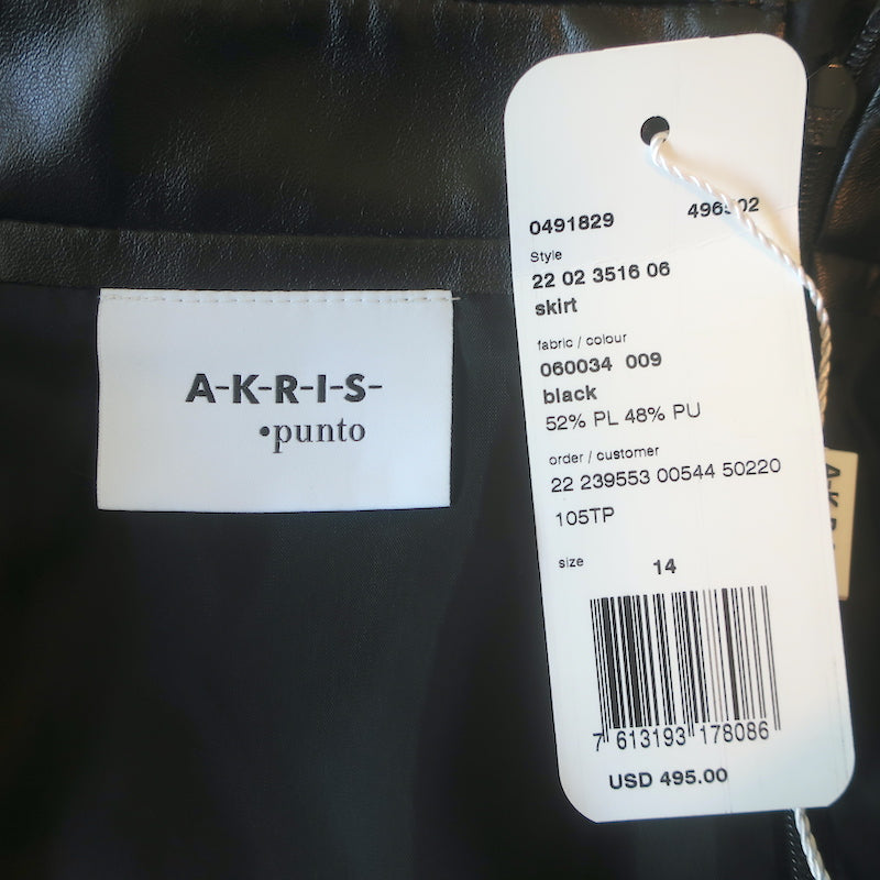 Akris Punto Vegan Leather Flounce Skirt Black Size US 14 NEW