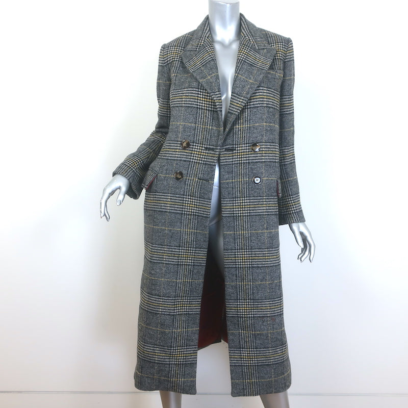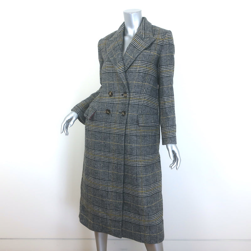 ALEXACHUNG Checked Tweed Double Breasted Coat Gray Wool-Blend Size UK 8