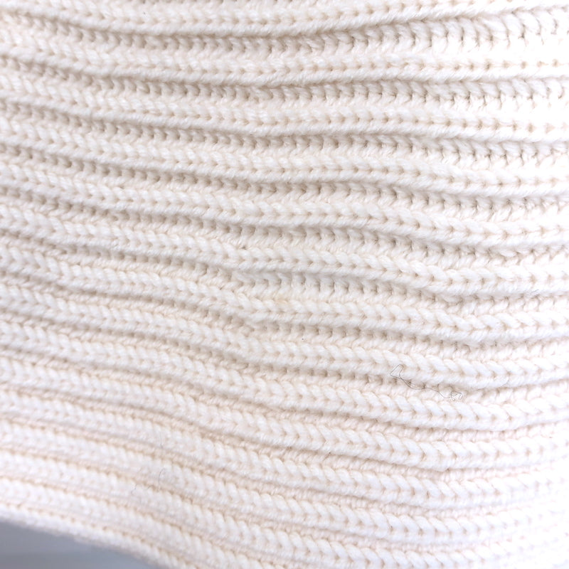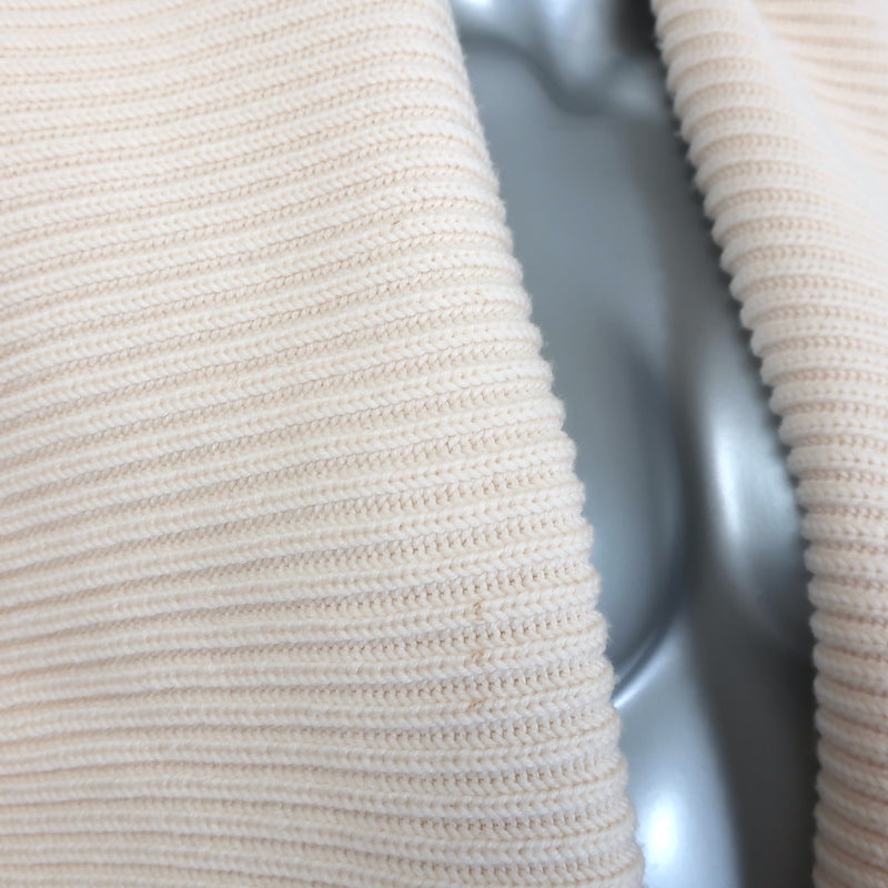 Care and suggestions: We recommend professional dry cleaning or a careful spot treatment by a specialist to address the smudges. Inspect photos closely for the snag and markings; the piece retains strong structural integrity and the knit remains soft and intact.