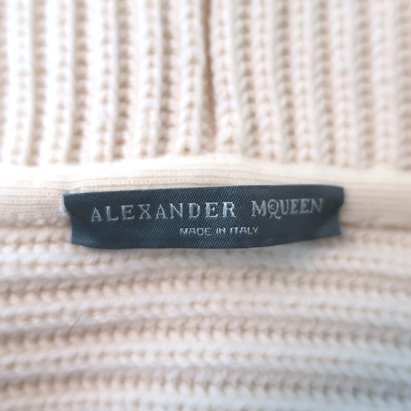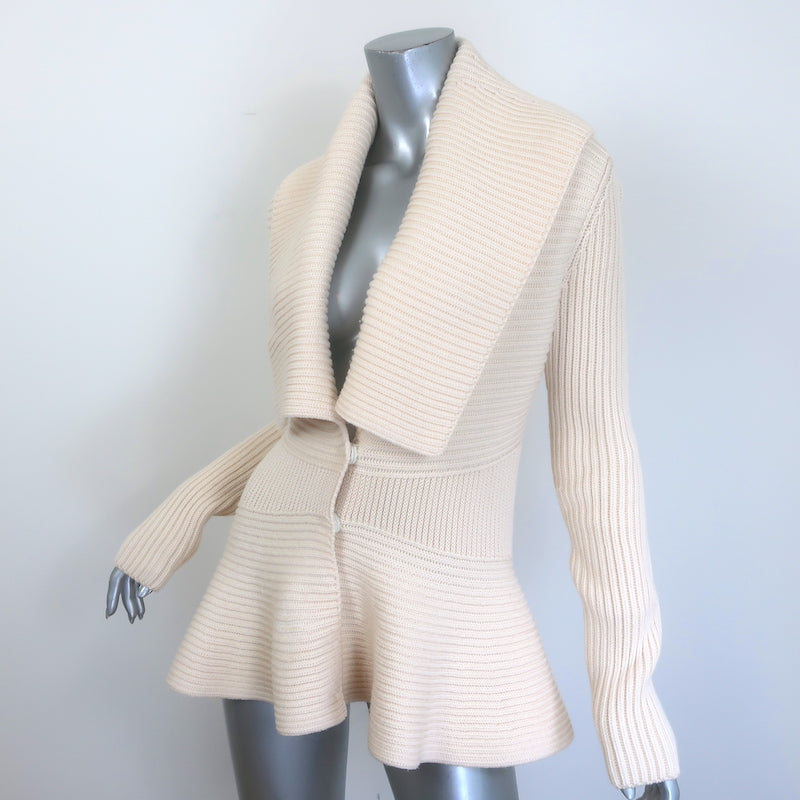 Alexander McQueen Ribbed Knit Peplum Cardigan Ivory Wool Size Large
