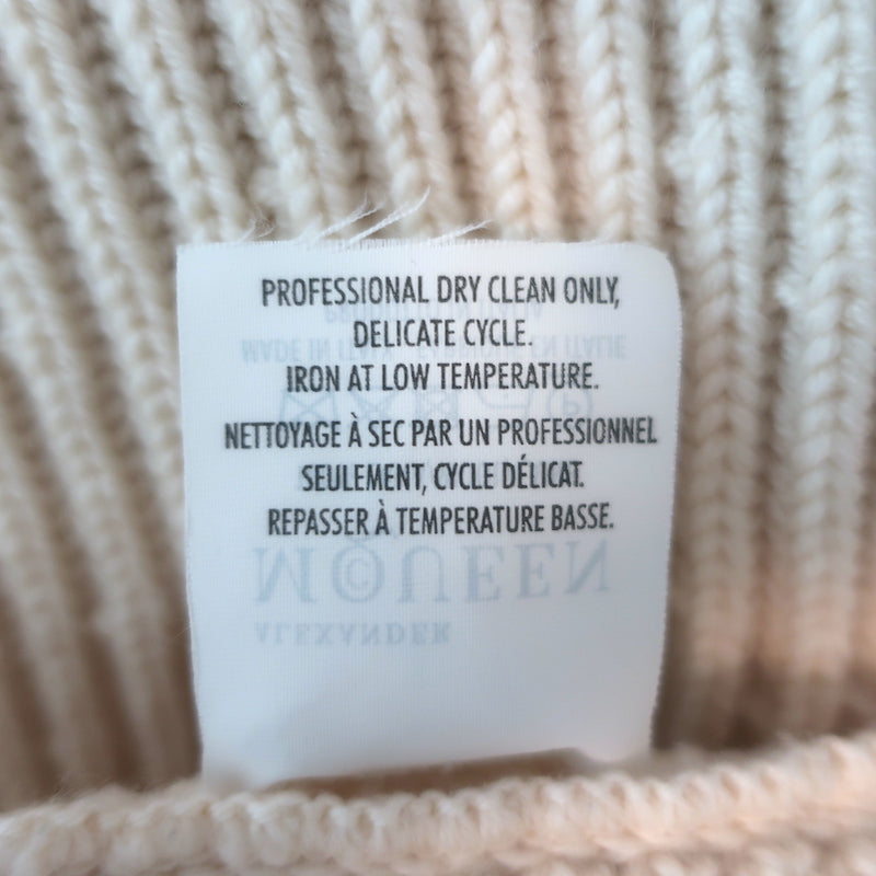 This pre-owned piece is crafted from fine wool with a defined rib texture and a subtle peplum hem that flatters the waist while offering a refined, wearable shape. The ivory tone reads timeless and luxe, making it a versatile layering piece for both day and evening looks. Alexander McQueen knitwear is frequently praised by fashion editors and collectors for its impeccable proportions and attention to finish — this cardigan reflects that same couture-minded approach in a wearable form.