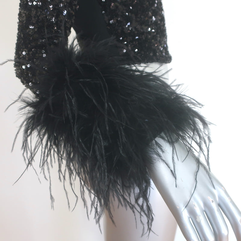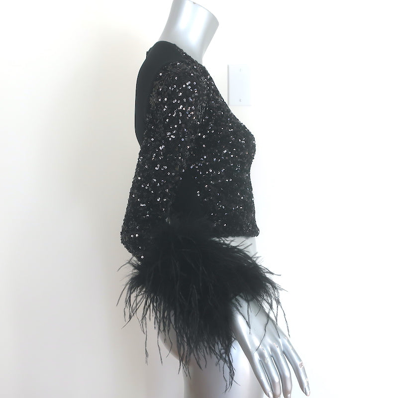 Alice + Olivia Delaina Sequined Feather-Cuff Top Black Size Extra Small