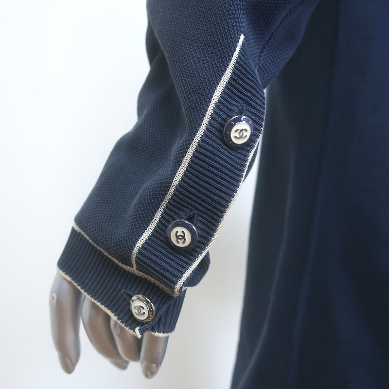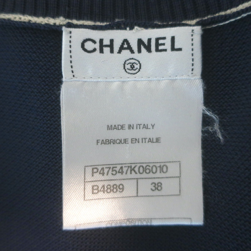 Chanel Cruise 2014 Piped V-Neck Long Cardigan Navy Cotton Pique Size 38