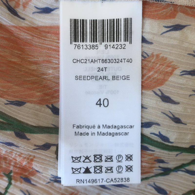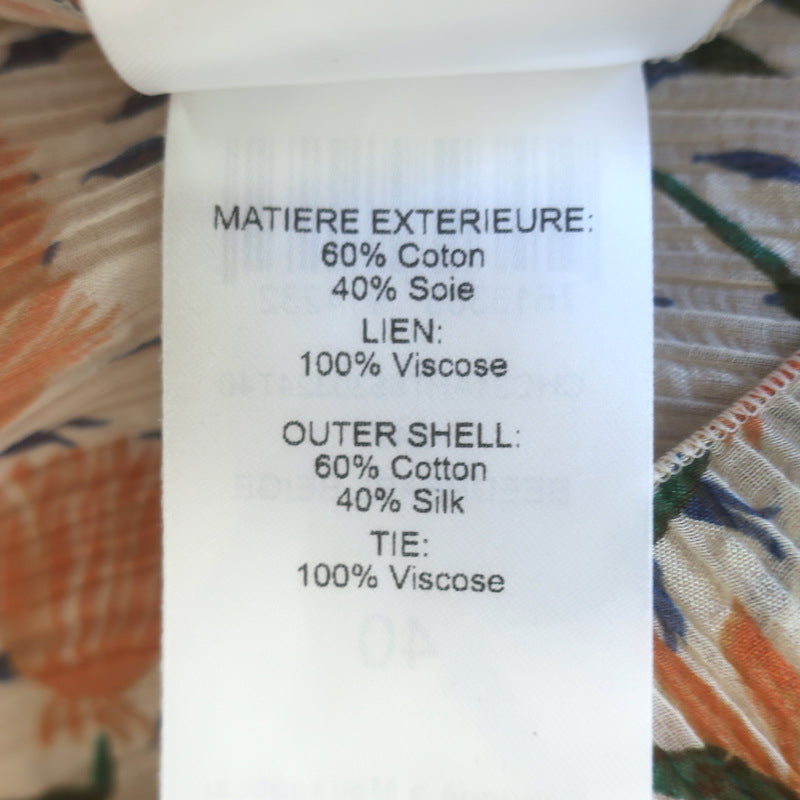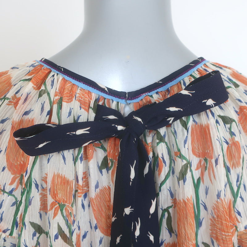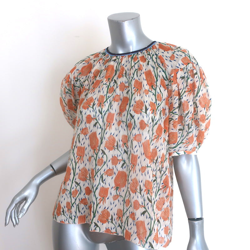 Chloe Tulip Print Puff Sleeve Blouse Cream/Orange Cotton-Silk Size 40