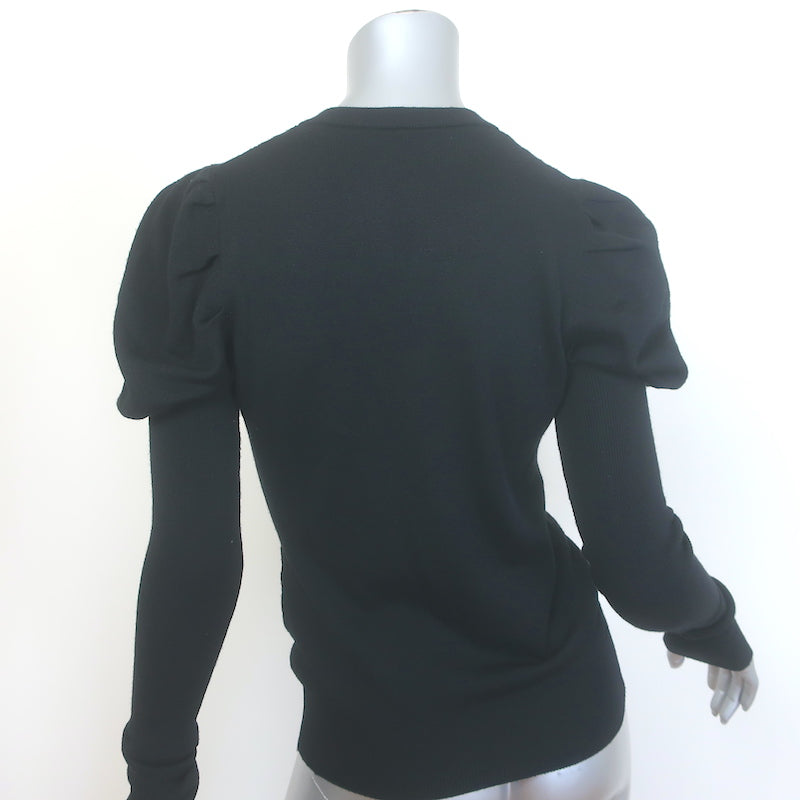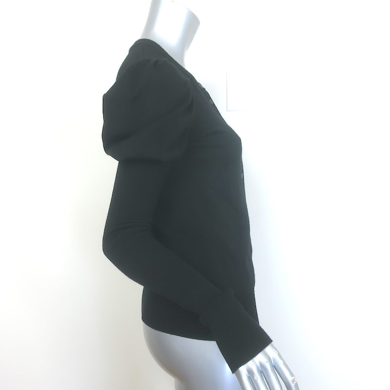 Dolce & Gabbana Floral-Embroidered Puff Sleeve Cardigan Black Wool Size 40