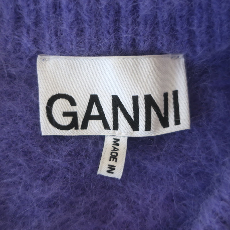 GANNI Brushed Alpaca Crewneck Sweater Purple Stretch Knit Size Extra Extra Small