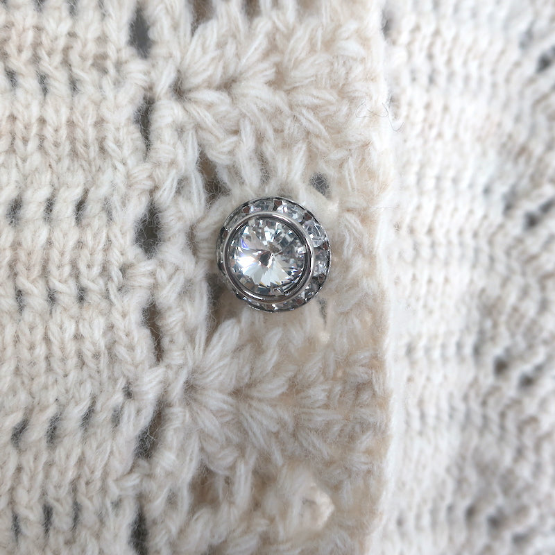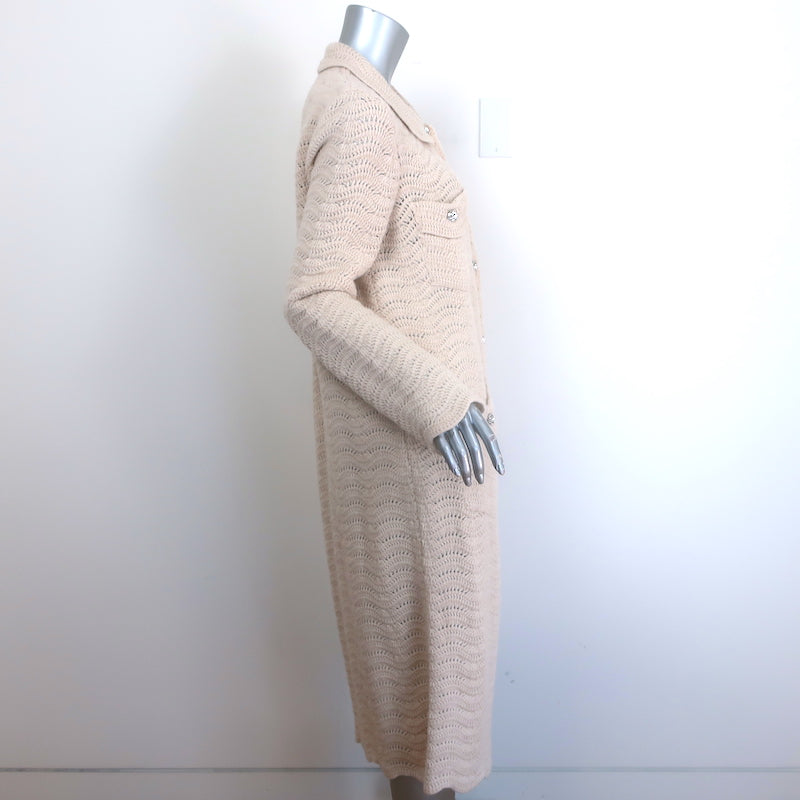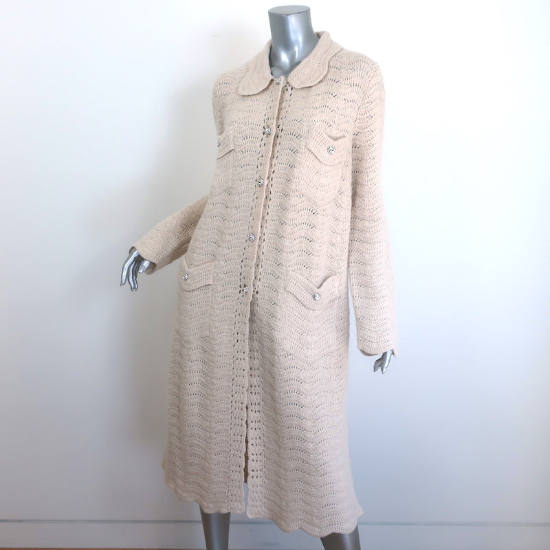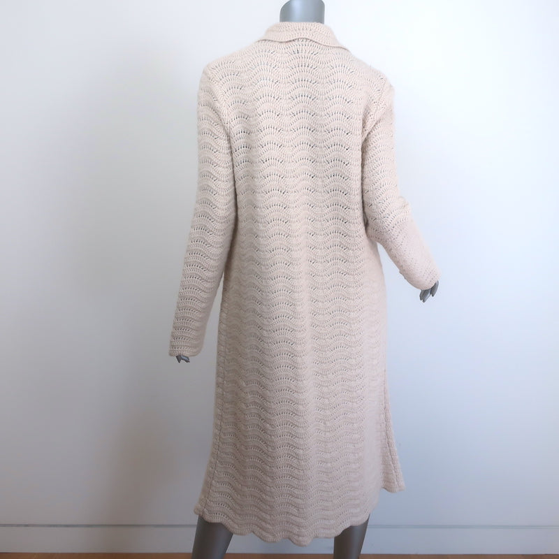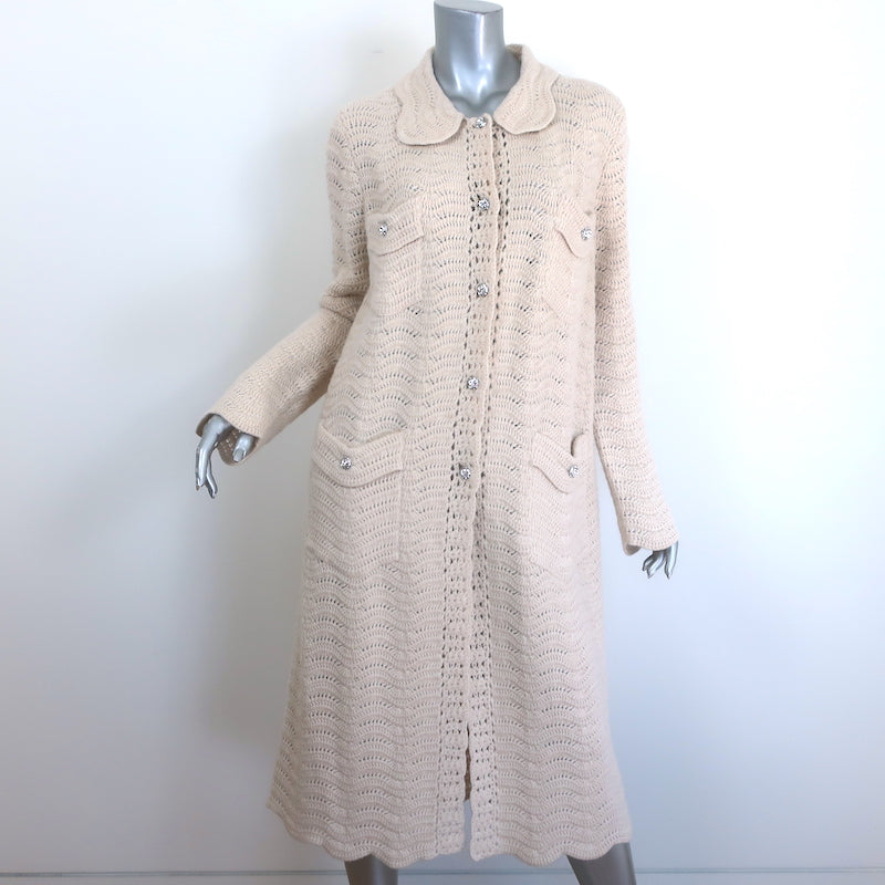 Gucci Crystal-Button Crochet Knit Duster Cardigan Ivory Wool Size Large
