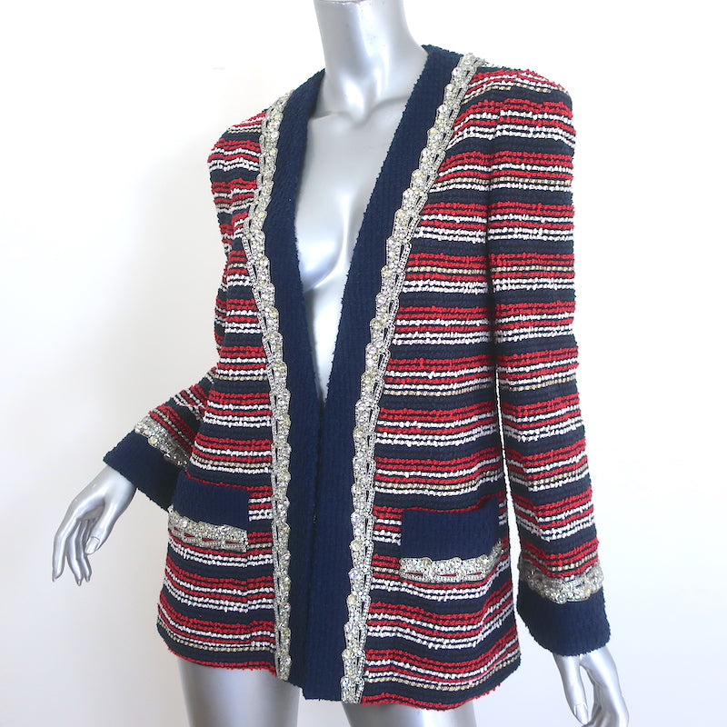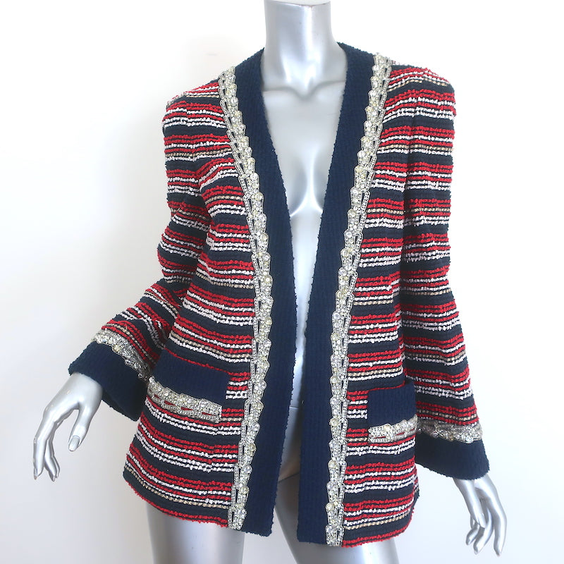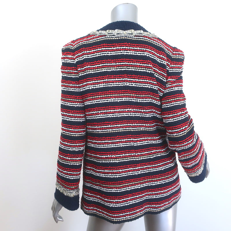 Gucci Crystal-Embellished Striped Boucle Jacket Red/Navy Cotton-Blend Size 44