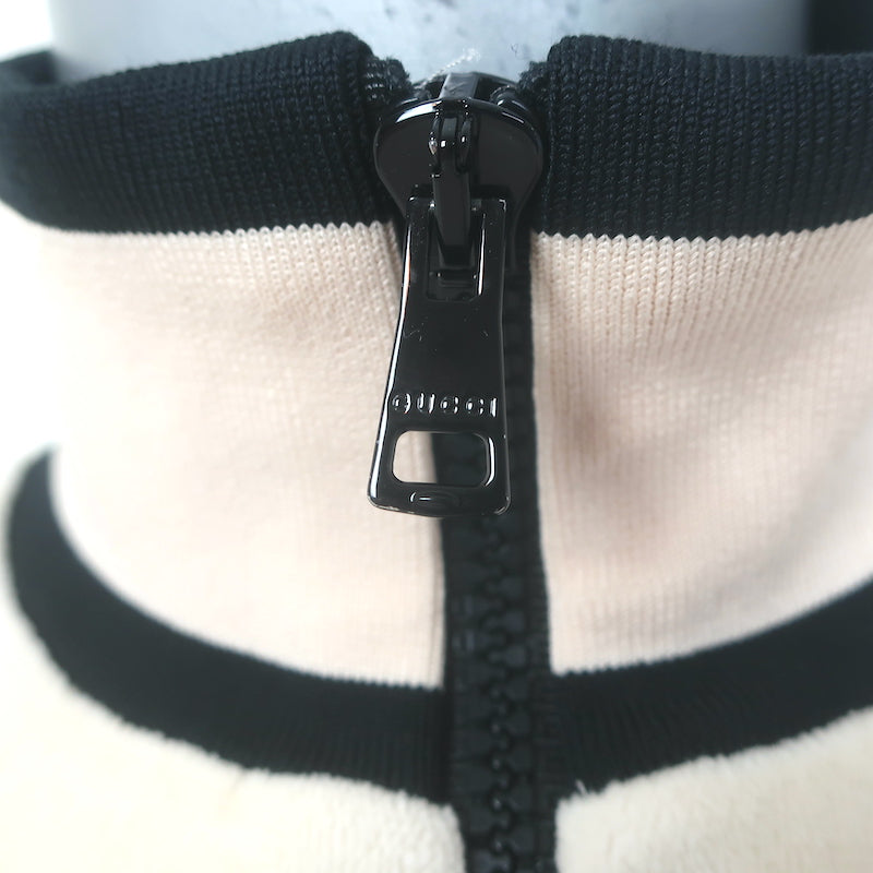 This pre-owned jacket pairs Gucci’s luxe sensibility with Adidas’ athletic heritage: a soft chenille texture, signature three‑stripe detailing, and a modern cropped silhouette that works equally well with high-waisted jeans or elevated athleisure. The piece is ivory in color and labeled Extra Small for a fitted, contemporary look.
