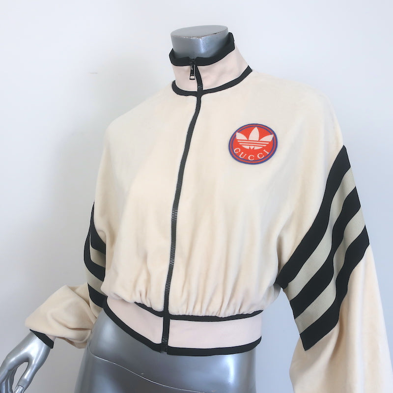 Gucci x Adidas Chenille Three-Stripe Cropped Jacket Ivory Size Extra Small
