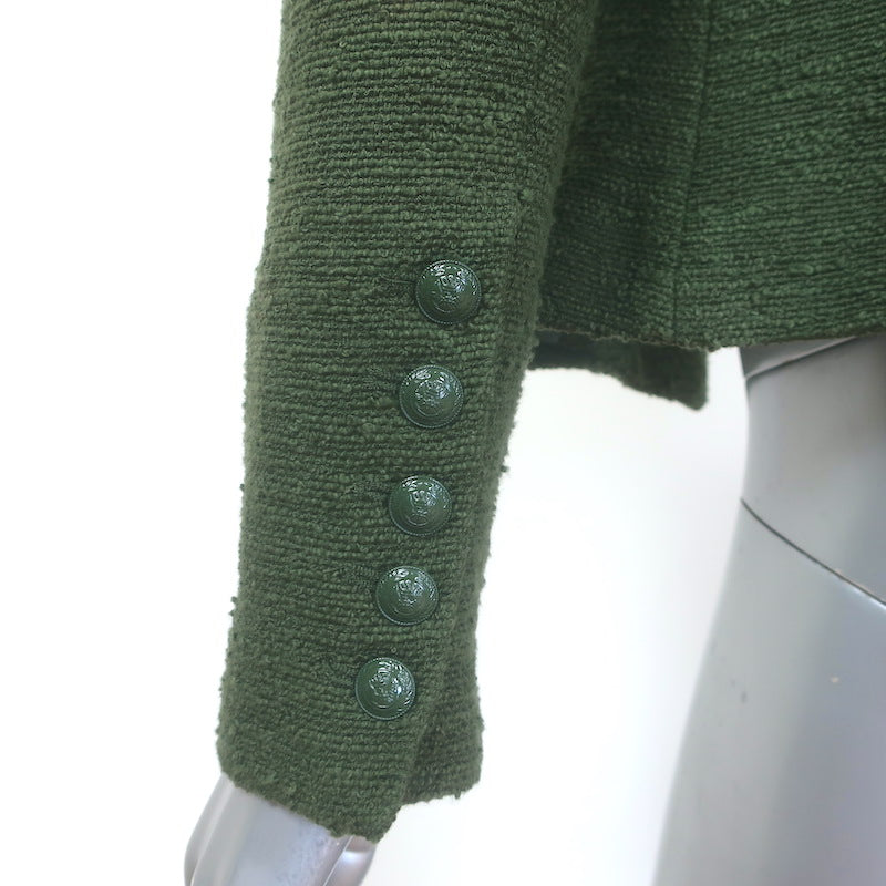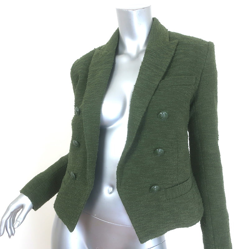 L'Agence Brooke Double-Breasted Cropped Tweed Blazer Dark Moss Size 00