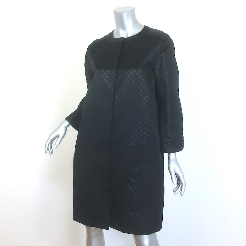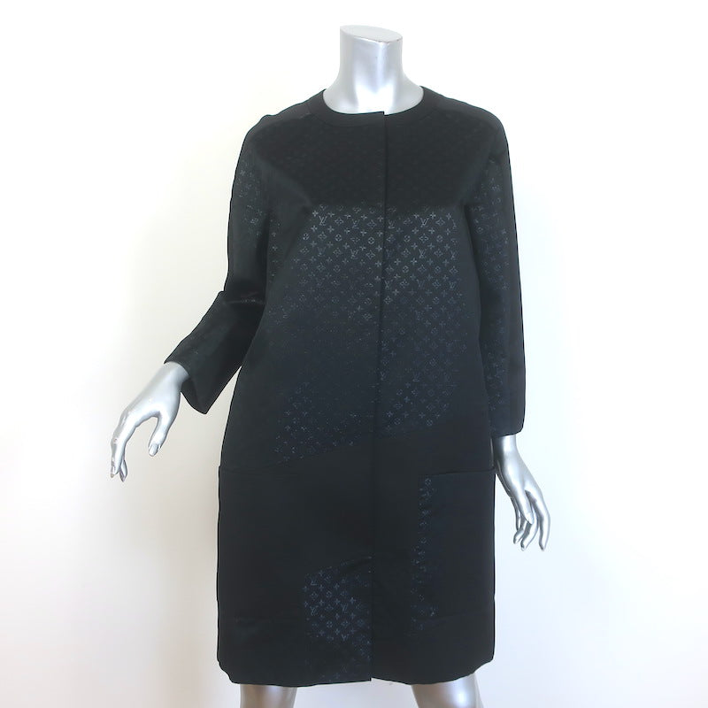 Louis Vuitton Monogram Satin Coat Black Silk-Blend Size 38