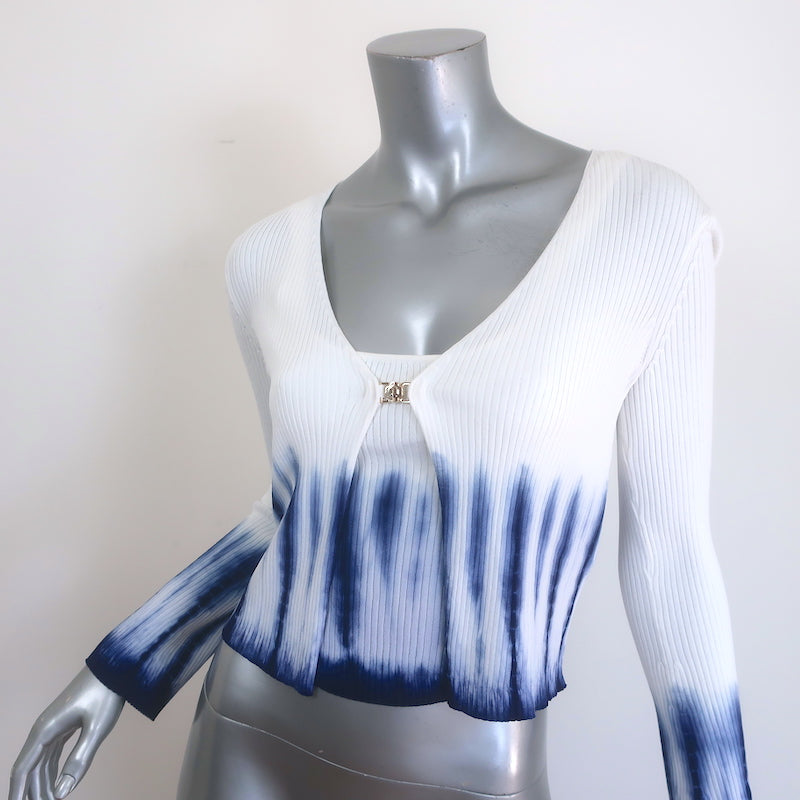Maje Mitournelle Tie Dye Ribbed Knit Cardigan & Tank Twin Set White/Navy Size 1