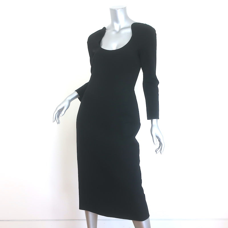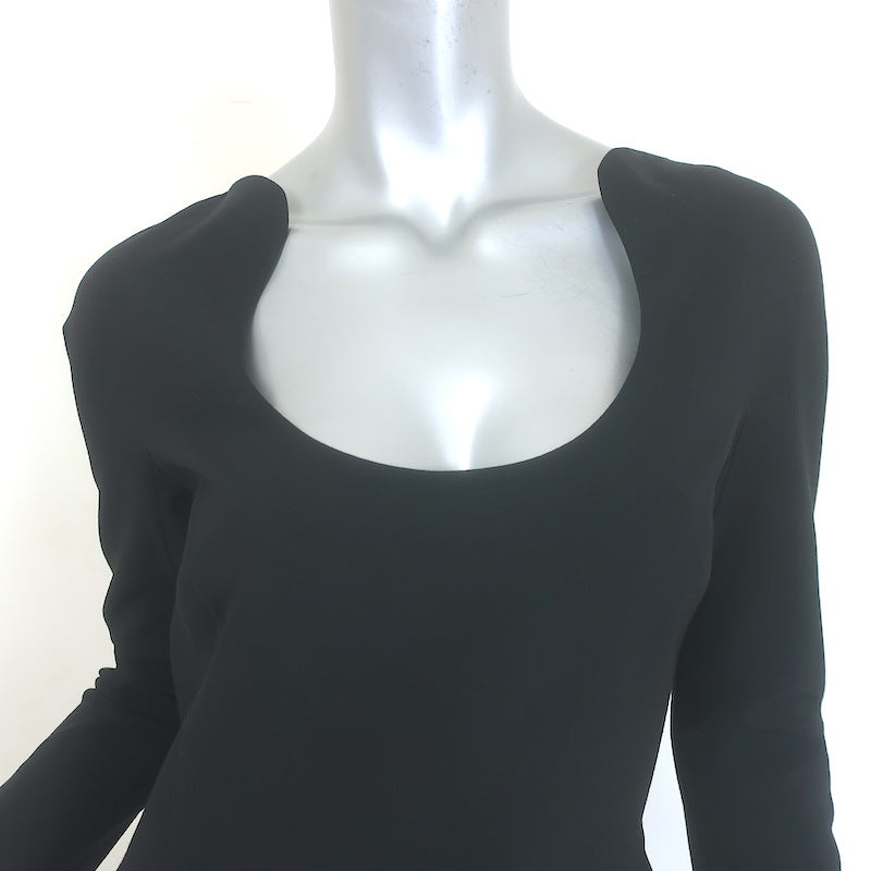 Oscar de la Renta Scoop-Neck Midi Sheath Dress Black Stretch Wool Size 6