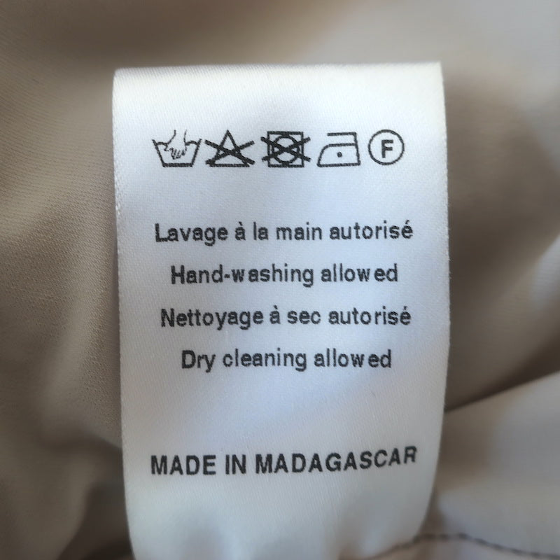 Pre-loved. Small smudges throughout may come out with cleaning. 50% acetate, 50% viscose