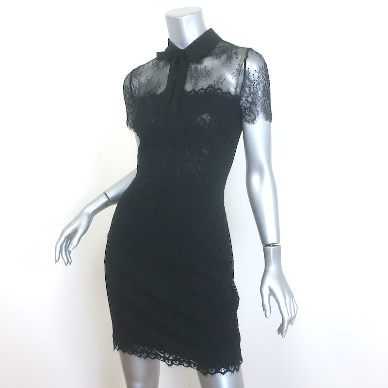 Sandro Rozen Bow-Neck Lace Mini Dress Black Size 2 NEW