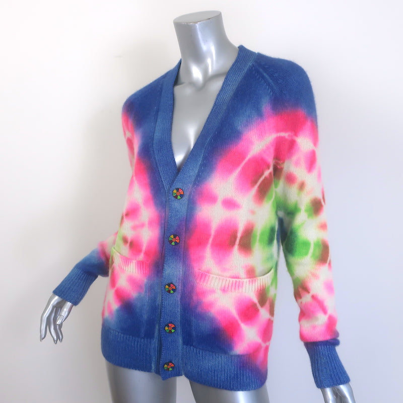 Elder Statesman Olympus tie-dye cashmere cardigan in Multi (Extra Small) is a sumptuous, artisanal knit that brings the brand’s signature soft cashmere and painterly colorwork into a wearable, pre-owned luxury piece.
