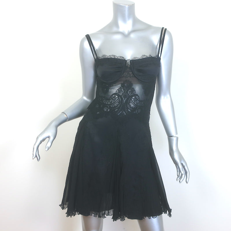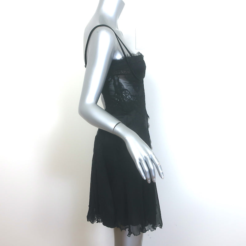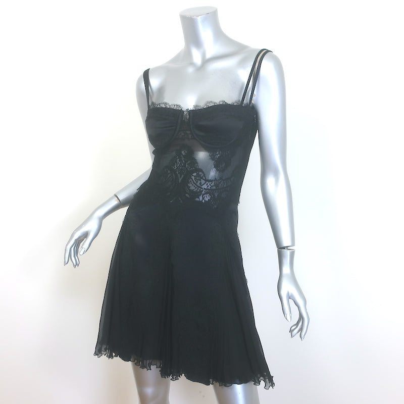 Versace Bustier Mini Dress Black Lace-Trimmed Pleated Silk Size 36