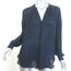 Vince Contrast-Trim Blouse Navy & Black Silk Size Small Long Sleeve Top